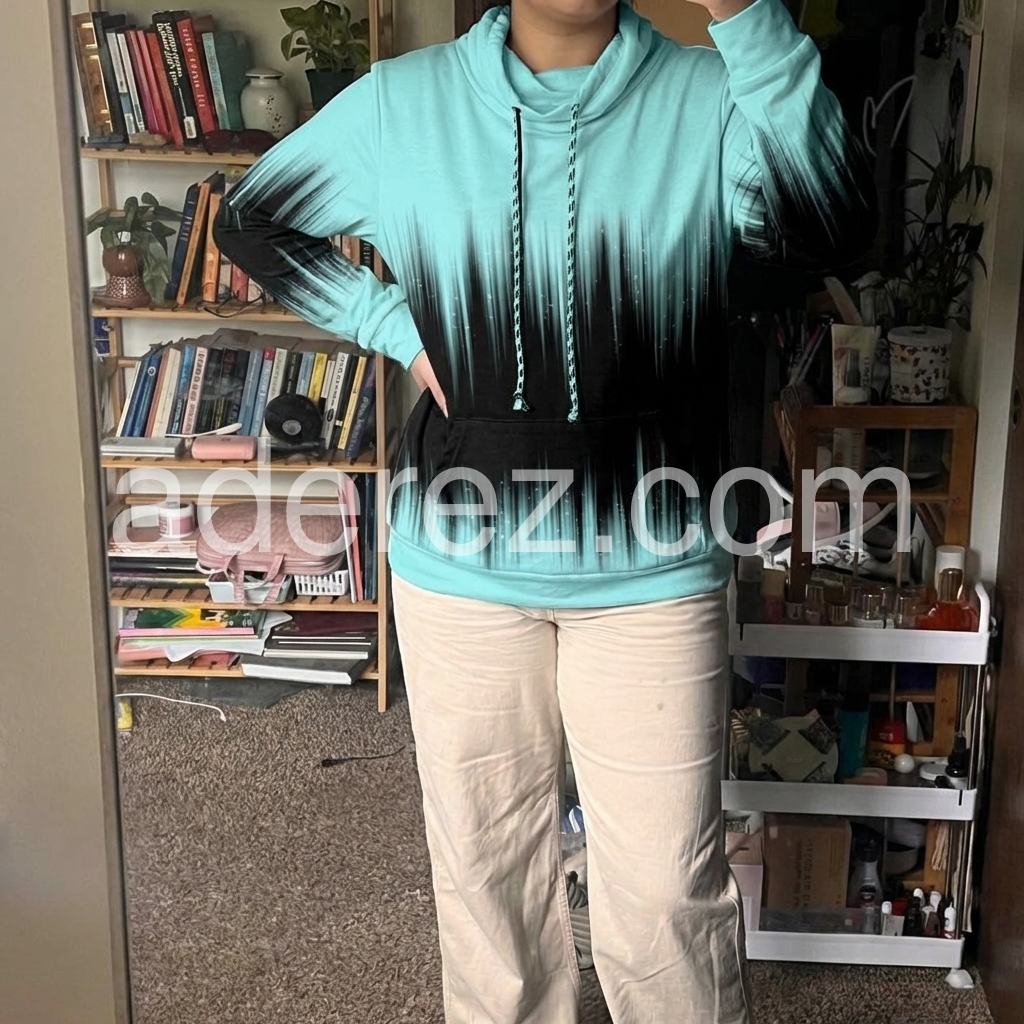 Aqua & Black Ombre Rain Hoodie Drawstring Sweatshirt